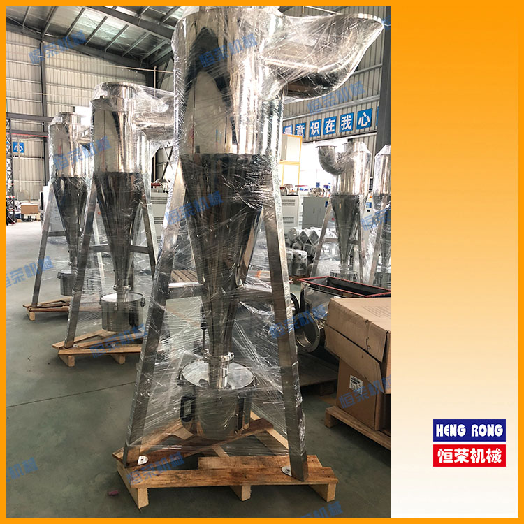 中央供料系统采用真空传送方式,通过集中的管路系统将塑料原料从储料罐输送到中央除湿干燥系统,然后将干燥后的原料输送到每台注塑机中,(水口集中粉碎输送系统:水口料通过输送带投料到粉碎机,由粉碎机进行粉碎、分离, 在真空负压系统中水口料掺杂的粉尘会通过过滤系统而过滤,水口料进入到储料斗与原料混合、计量,通过中央供料控制系统进入吹塑机)中央供料系统采用“一台机器一根管”的设计方式,保证整个系统的空气对原料进行输送,防止除湿干燥后的原料回潮。同时在每个输运行稳定,绝无堵料的现象发生。它配合中央除湿干燥系统使用,可使用除湿干燥送循环后会对输送管线进行清理,确保管路内没有残余的粒料,在避免原料回潮的同时,也保证了加入注塑机中的原料性能的一致。在真空负压作用下原料中原由的粉尘会通过粉尘过滤系统被过滤出来,有助于提高成型产品的质量。