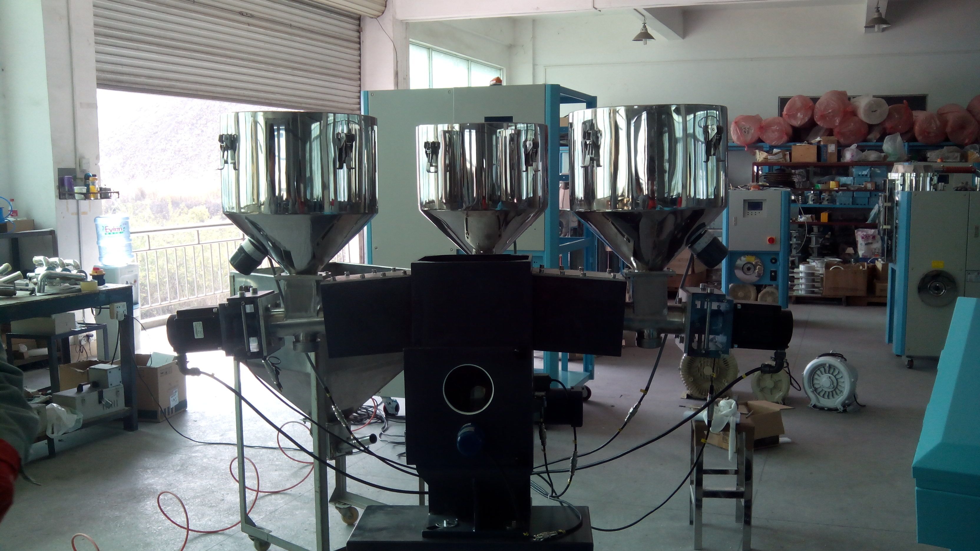 自动计量系统分为体积式螺杆计量器组成的系统和称重式计量器组成的色母配比系统。